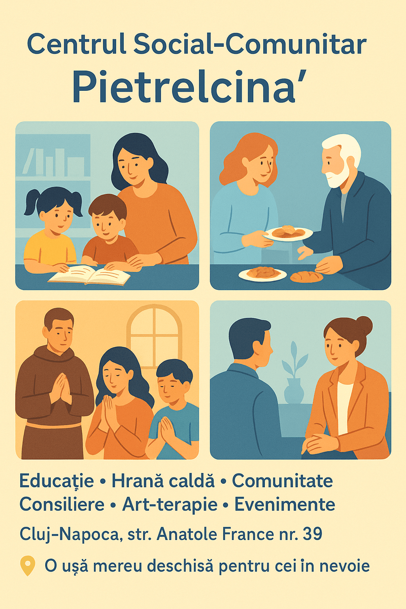 Campania de Sărbători „10 AJUNURI CU PADRE PIO LA CLUJ-NAPOCA” este o invitație la solidaritate, căldură și întâlnire. În preajma Crăciunului, aducem împreună comunitatea noastră — copii, părinți, voluntari și beneficiari — într-o serie de acțiuni care unesc inimile și dau viață spiritului autentic al sărbătorilor.