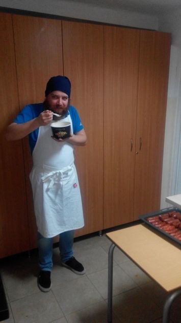 Aceasta prima zi de post a coincis cu masa calda saptamanala, pe care o oferim oamenilor gazduiti temporar la Centrul din str. Oasului; asa ca insotiti de prietenii nostri de la Compania Emerson, tineri cu suflet mare si frumos, care au si sustinut financiar costul mesei din aceasta seara, ne-am apucat din nou de bucatarit! Meniul zilei, ciorba de praz, care a fost un adevarat deliciu :) si piure de cartofi cu carnati la cuptor. Ca intotdeauna, o masa bogata, buna si gustoasa, savurata pana la ultima portie, spre marea noastra bucurie si satisfactie sufleteasca... Suntem chemati in acest zile sa atingem si sa contemplam ranile lui Isus, sa punem mana pe un bolnav, pe un sarac, pe un muribund, pe un orfan, pe un batran, ori pe un tanar deznadajduit si ratacit, sa stergem o lacrima a celui ce plange, sa pansam o rana si sa lasam pe umar un cap sa se plece si sa-si spuna of-ul...numai asa vom putea simti si atinge cu adevarat ranile Celui ce, cu o iubire nemarginita nu a ezitat sa-si daruiasca viata pentru prieteni, pentru frati, pentru slujitori, pentru stapani, pentru mici si mari, pentru lumea intreaga, pentru noi toti !