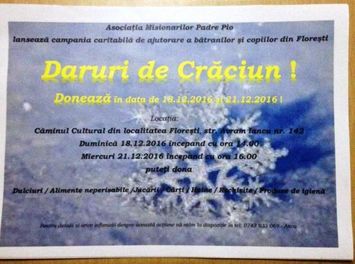 "Sa daruim bucurie si lumina pentru un Craciun Fericit !" (2016) - "Daruri de Craciun" - actiune caritabila in Loc. Floresti