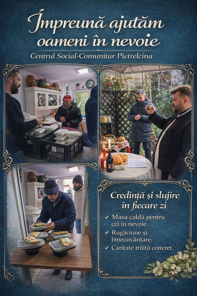 • începând cu ora 13.00, acțiunea "Manca-vor săracii si se vor satura", care se va desfășura la Centrul de Găzduire Temporara și constă în distribuirea de hrană caldă, în regim de catering, unui număr de cca. 55 de persoane, beneficiari ai centrului;
